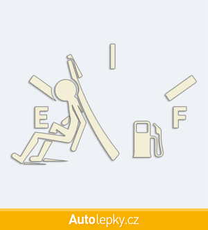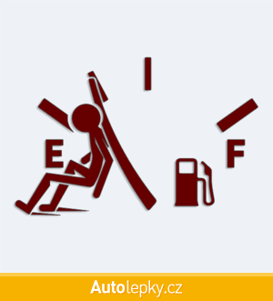 Nálepku prázdná nádrž na auto vyrábíme ve 40 barvách a mnoha velikostech. Minimální rozměr samolepky je 10×6.5 cm, katalogové číslo 6342. Samolepka prázdná nádrž na auto je vyrobena z kvalitní samolepicí fólie s životností 3-5 let.