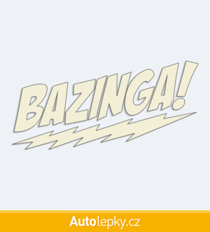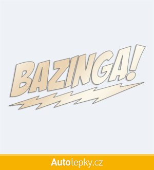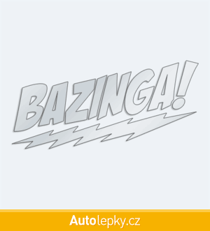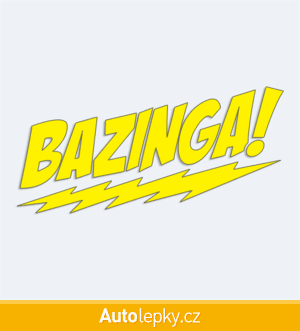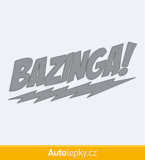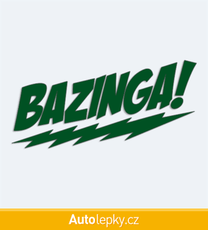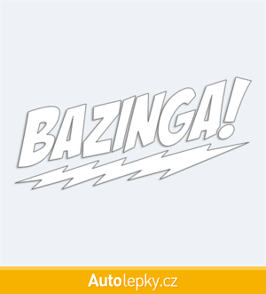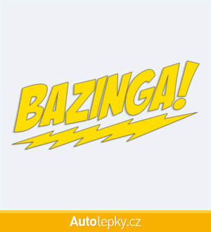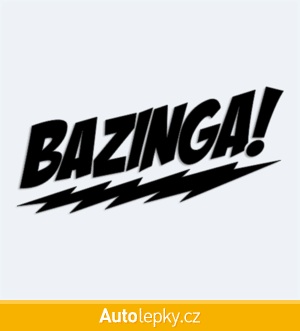 Nálepku BAZINGA! na auto vyrábíme ve 40 barvách a mnoha velikostech. Minimální rozměr samolepky je 10×4.8 cm, katalogové číslo 5957. Samolepka s nápisem BAZINGA! je vyrobena z kvalitní samolepicí fólie s životností 3-5 let.