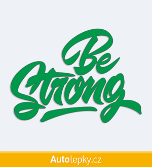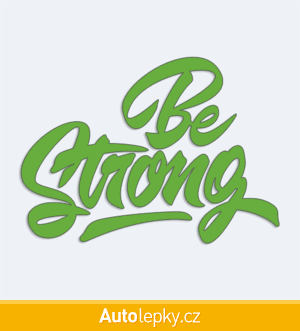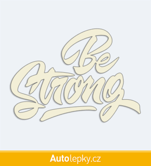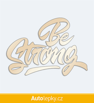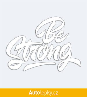 Nálepku be strong na auto vyrábíme ve 40 barvách a mnoha velikostech. Minimální rozměr samolepky je 10×7.2 cm, katalogové číslo 6170. Samolepka s nápisem be strong je vyrobena z kvalitní samolepicí fólie s životností 3-5 let.