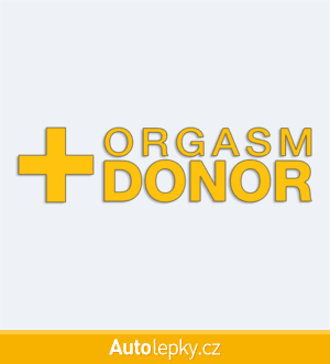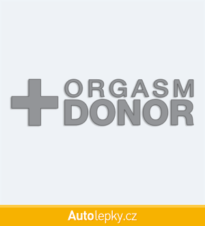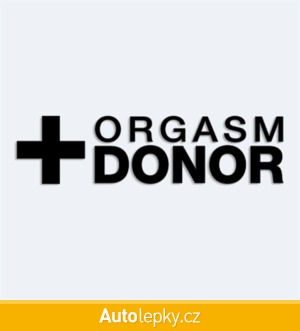 Nálepku orgasm donor na auto vyrábíme ve 40 barvách a mnoha velikostech. Minimální rozměr samolepky je 10×2.6 cm, katalogové číslo 6307. Samolepka s nápisem orgasm donor je vyrobena z kvalitní samolepicí fólie s životností 3-5 let.
