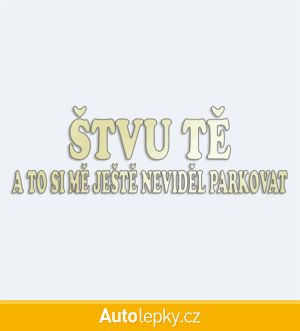 Nálepku štvu tě na auto vyrábíme ve 40 barvách a mnoha velikostech. Minimální rozměr samolepky je 10×3.2 cm, katalogové číslo 6379. Samolepka s nápisem štvu tě je vyrobena z kvalitní samolepicí fólie s životností 3-5 let.