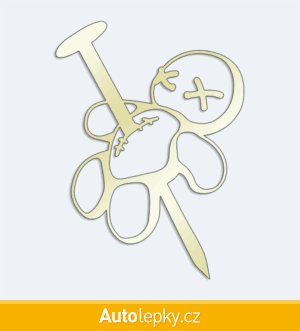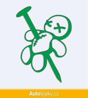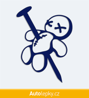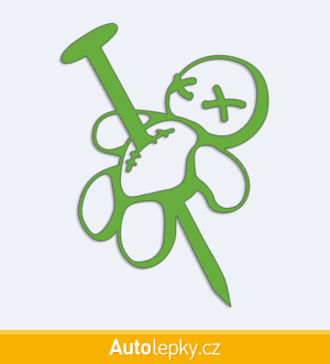 Nálepku woodoo panenka na auto vyrábíme ve 40 barvách a mnoha velikostech. Minimální rozměr samolepky je 5.8×8 cm, katalogové číslo 6270. Samolepka s nápisem woodoo panenka je vyrobena z kvalitní samolepicí fólie s životností 3-5 let.