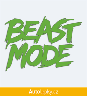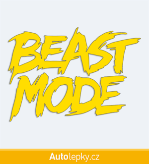Nálepku BEAST MODE na auto vyrábíme ve 40 barvách a mnoha velikostech. Minimální rozměr samolepky je 10×7.1 cm, katalogové číslo 5965. Samolepka s textem BEAST MODE je vyrobena z kvalitní samolepicí fólie s životností 3-5 let.