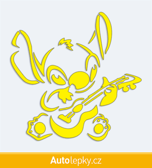 Nálepku stitch s kytarou na auto vyrábíme ve 40 barvách a mnoha velikostech. Minimální rozměr samolepky je 10×9.8 cm, katalogové číslo 6184. Samolepka stitch s kytarou na auto je vyrobena z kvalitní samolepicí fólie s životností 3-5 let.