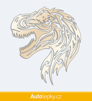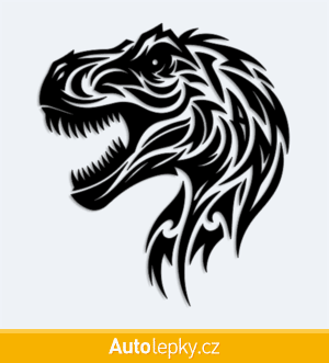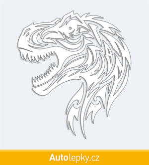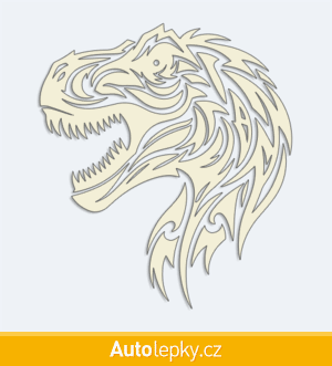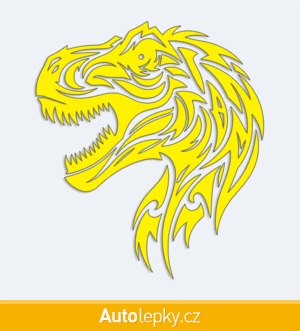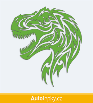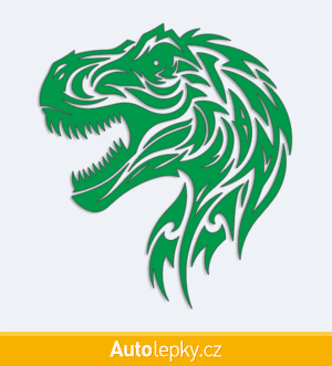 Nálepku tyranosauří hlava na auto vyrábíme ve 40 barvách a mnoha velikostech. Minimální rozměr samolepky je 10.6×12 cm, katalogové číslo 6086. Samolepka tyranosauří hlava na auto je vyrobena z kvalitní samolepicí fólie s životností 3-5 let.