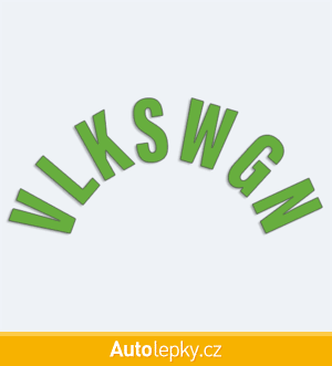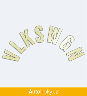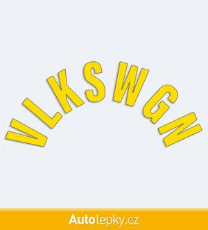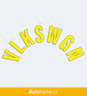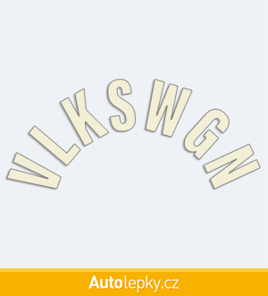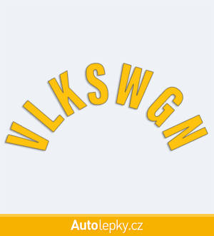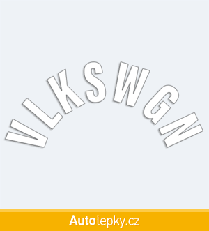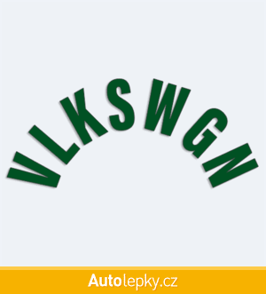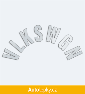 Nálepku VLKSWGN na auto vyrábíme ve 40 barvách a mnoha velikostech. Minimální rozměr samolepky je 8×3.5 cm, katalogové číslo 6202. Samolepka VLKSWGN do půlkruhu na auto je vyrobena z kvalitní samolepicí fólie s životností 3-5 let.