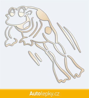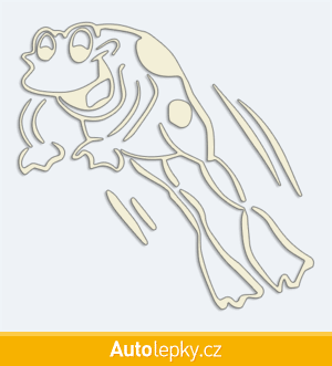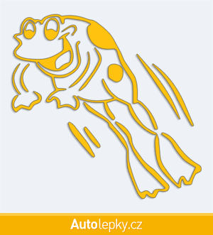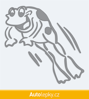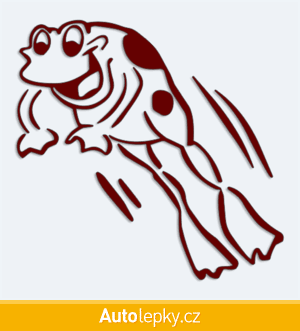 Nálepku žába ve skoku na auto vyrábíme ve 40 barvách a mnoha velikostech. Minimální rozměr samolepky je 10×9.8 cm, katalogové číslo 5974. Samolepka žába ve skoku na auto je vyrobena z kvalitní samolepicí fólie s životností 3-5 let.