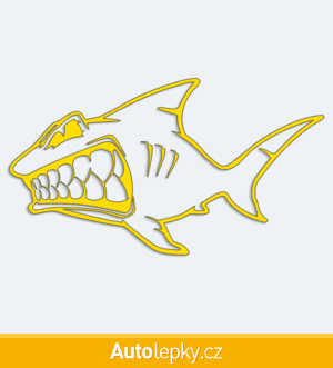 Nálepku žraločí úsměv na auto vyrábíme ve 40 barvách a mnoha velikostech. Minimální rozměr samolepky je 12×6.7 cm, katalogové číslo 6179. Samolepka žraločí úsměv na auto je vyrobena z kvalitní samolepicí fólie s životností 3-5 let.