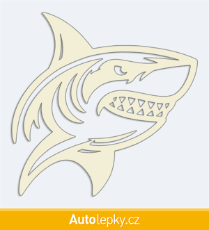 Nálepku žralok na auto vyrábíme ve 40 barvách a mnoha velikostech. Minimální rozměr samolepky je 10×9.9 cm, katalogové číslo 5953. Samolepka žralok na auto je vyrobena z kvalitní samolepicí fólie s životností 3-5 let.